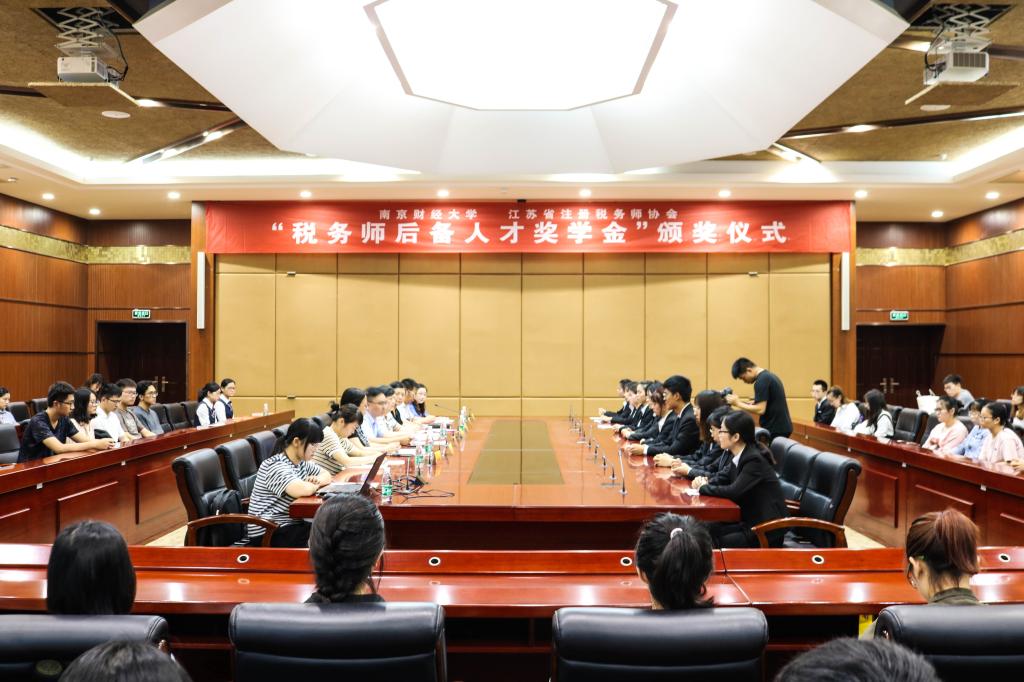6月18日下午,电子娱乐城于工科楼会议室举行2019年度“税务师后备人才奖学金”捐赠暨颁奖仪式。江苏省注册税务师协会会长周苏明,副会长于阜宁,办公室副主任徐华敏,我校对外联络处副处长王冲,电子娱乐城领导及师生代表参加仪式。